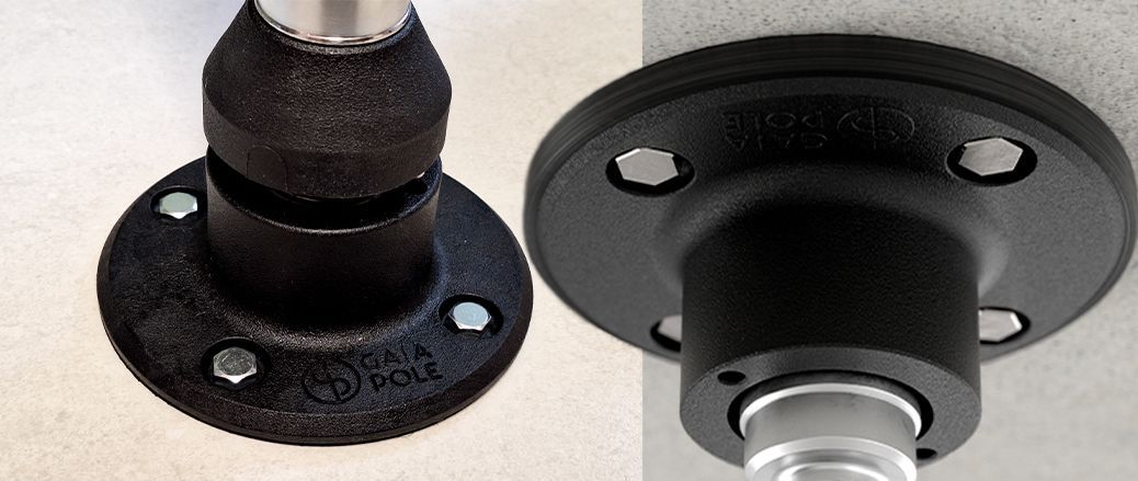 All the screws on the bases are recessed, so there are no sharp edges or points. In other words: no risk of cuts, bruises or snagged hair. This is the care that only Gaia Pole takes. Furthermore, our high-strength polymer bases won’t rust or peel, which also prevents accidents. Here we always prioritize your safety!