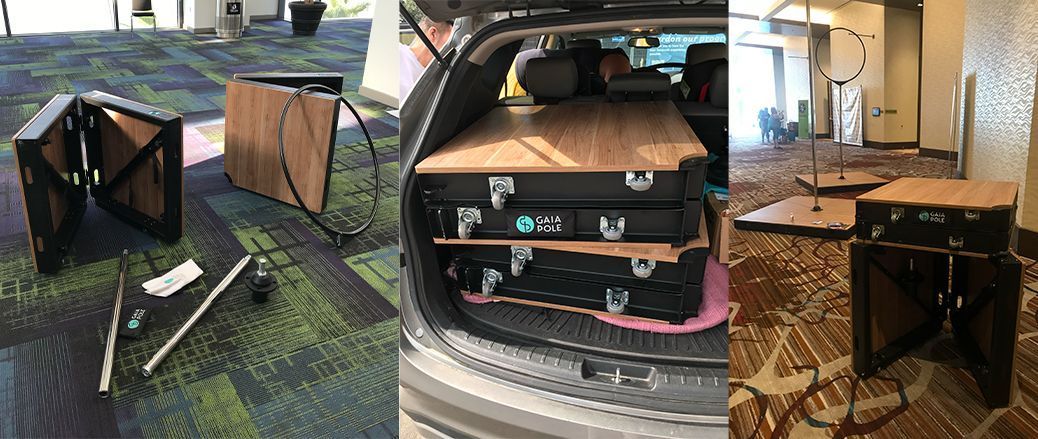 The Quick Lock Portable Stage is a Gaia Pole’s exclusive creation that combines practicality, beauty and safety in the same product. The only one in the world to transform into two boxes with wheels, it’s ideal for outdoor activities and events, as well as being a powerful marketing tool for studios. Set up in less than 5 minutes by a single person, the pole changes from static to spinning with one click and has the best grip on the market. It’s also available in a version with a rubberized pole. Find out more about this unique piece of equipment, perfect for all levels of pole dancers: from beginner to professional!