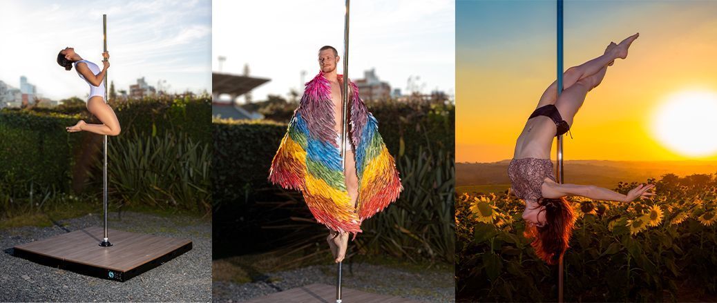 Have you ever thought about practicing Pole in different beautiful outdoor settings? With our Portable Stage it’s possible! The square, sturdy base guarantees total stability for performances on any type of terrain: from the most stable, such as pavement and concrete; to the most unstable, such as sand, grass and cobblestones. This allows you to perform and take lots of photos in places such as beaches, waterfalls and mountains. When assembled, the Portable Stage has a useful performance size of 4.92ft x 4.92ft with a pole that reaches up to 8.85ft.