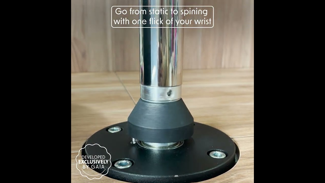 It has the same grip (diameter) as the stainless steel pole, but it has a special rubber coating, ensuring extreme grip even on clothes and shoes. To use it on the Gaia Stage, you just need to attach it to the Quick Lock base and it turns into a beautiful rubberized pole with a static and spinning system in one click. Our pole was developed in partnership with circus artists and Pole Dance athletes after years of testing to achieve the perfect grip and rubber for acrobatics. The Rubberized Stage Pole can also be used as a Flying Pole (pendulum pole).