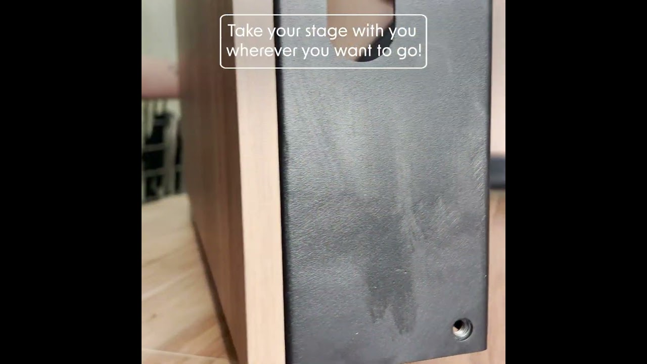 - 1.5m x 1.5m / 4.92ft x 4.92ft stage base transforms into two 800mm x 800mm wheeled boxes.
